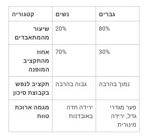 א) פער האובדנות המגדרי בישראל גדל לקצת למעל ל 1:4 כלומר על כל אישה מתאבדים קצת למעלה מחמישה גברים!